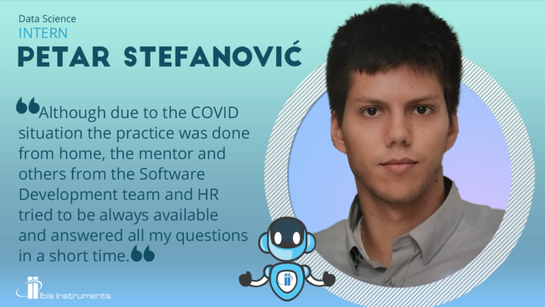 “During my practice at Ibis instruments, on the position of Data Scientist, I had the opportunity to get acquainted with the company’s projects, the technologies used and the way of working in the industry. Although due to the COVID situation the practice was done from home, the mentor and others from the Software Development team and HR tried to be always available, and answered all my questions in a short time. The internship lasted 3 months, where the first month was training, while the remaining two I worked on a project that included: data introduction, data processing, training and model selection and implementation of the selected model in an existing application. For me, the internship at Ibis was a pleasant and rewarding experience. ”