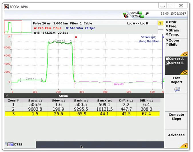 VIAVI provides the ONLY fully-portable DTS and DTSS solutions that also contain traditional OTDR test functionalities to validate the optical fiber sensor prior to distributed temperature and strain measurement activities. Our solutions based on Brillouin-OTDR and Raman-OTDR are supported in/on battery-operated field platforms or can be rack-mounted for automated fiber monitoring applications.