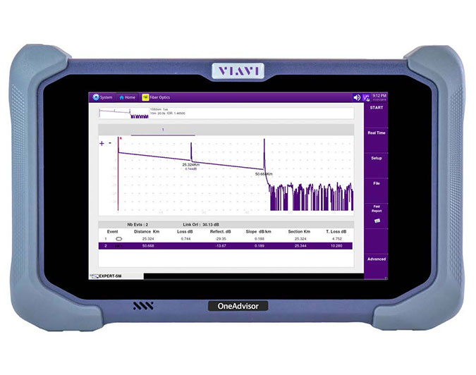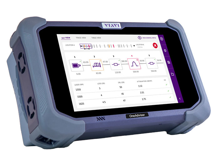 VIAVI OneAdvisor-800 is a comprehensive hybrid tester used during the construction of LTE and 5G cell sites, reception, commissioning and maintenance tests in the radio access network (RAN). Its modularity allows technicians to test optical fibers, RF OTA (over the air), coaxial cables and antennas.